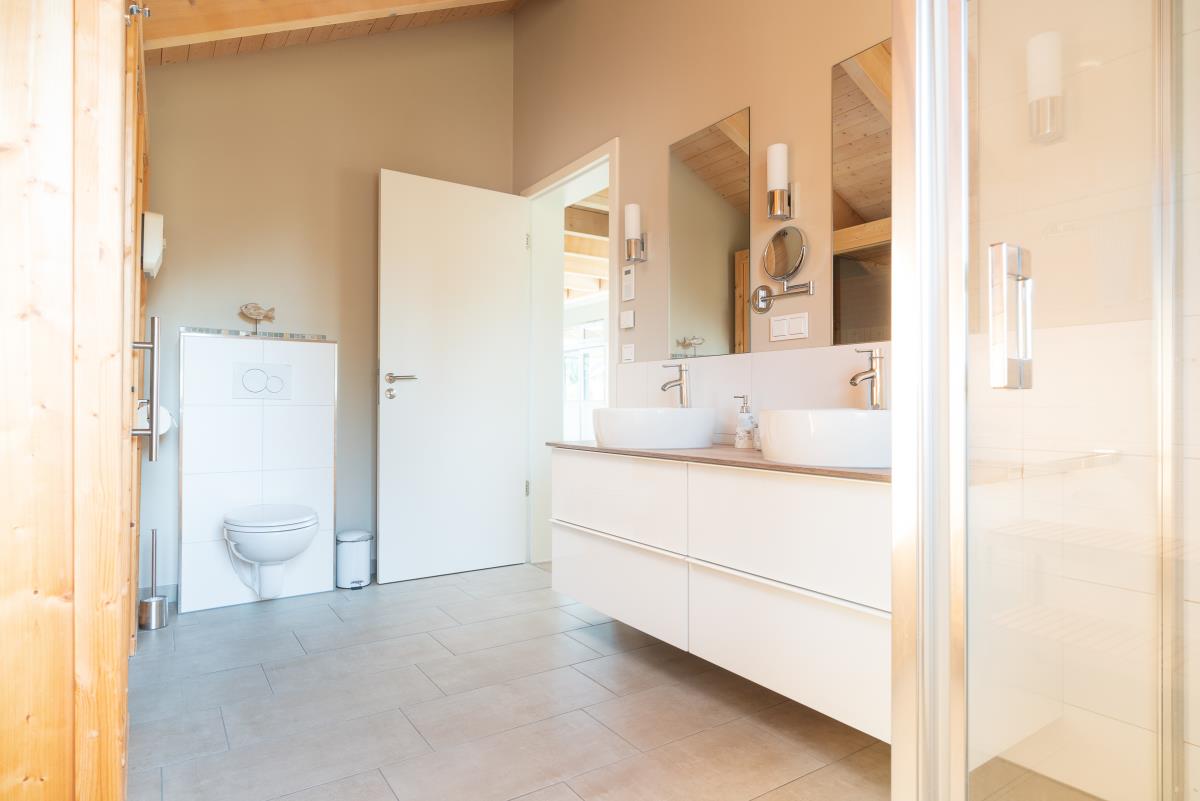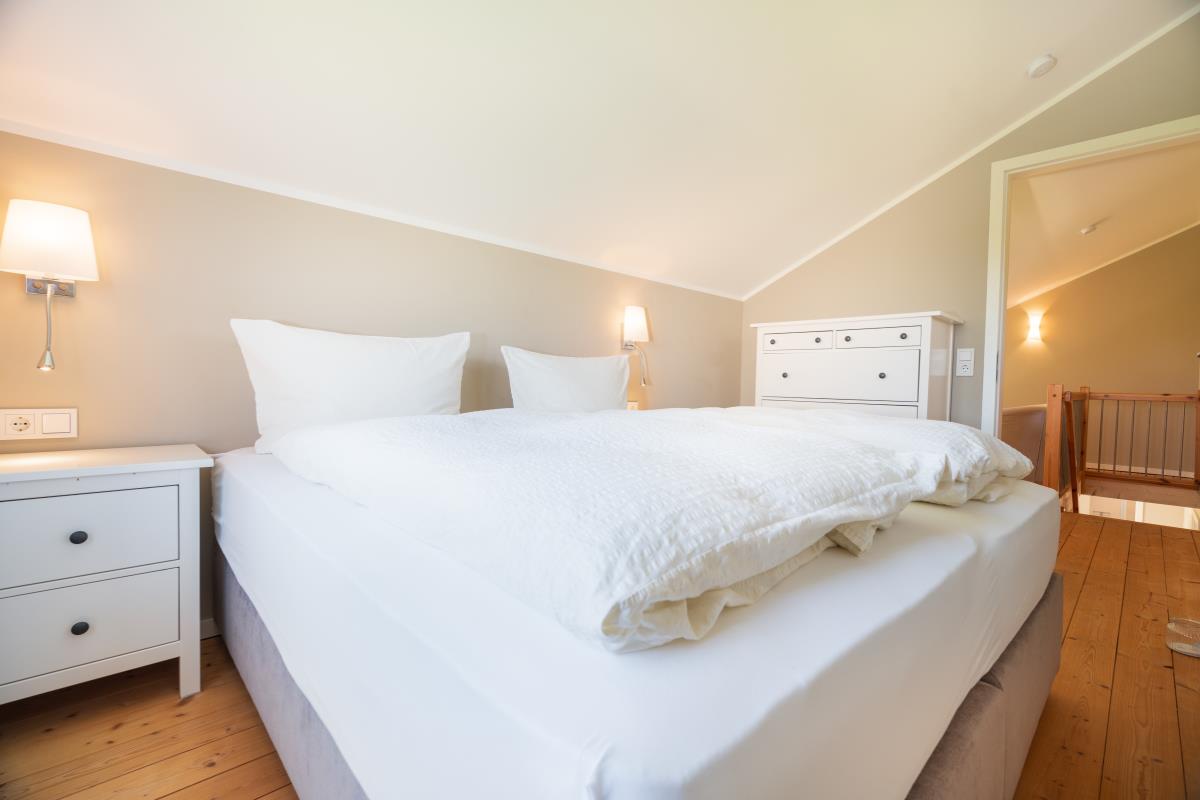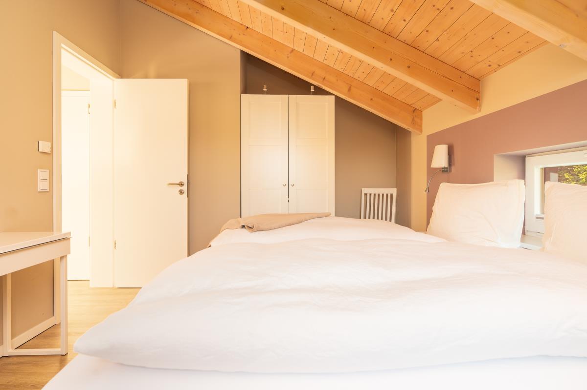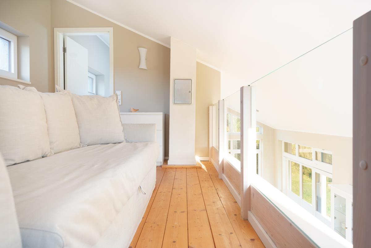 Haus Buche bietet Platz für 6-8 Personen, ist ideal für größere Familien, Familien mit Großeltern, oder zwei kleine Familien und Freunde. Offen gestalteter Wohnraum mit Ofen und bodentiefen Fenstern, drei Schlafzimmern mit Boxspringbetten, einer offenen Galerie mit Sofa, das zu einem Bett 140×90 umfunktioniert werden kann, ein großes Badezimmer mit Sauna und ein Gästebad. Haus Buche ist sehr gut ausgestattet und bietet den Komfort für einen erholsamen Urlaub. Um das Haus herum ist eine gepflegte Grünfläche eingesäumt von Sträuchern. Eine große Sonnenterrasse mit Sitzgruppe und Strandkorb, und eine teilüberdachte Terrasse, bieten Möglichkeiten um es sich draußen schön zu machen, zum Sonnen, zum Grillen oder zum Toben. Parkplatz ist am Haus.