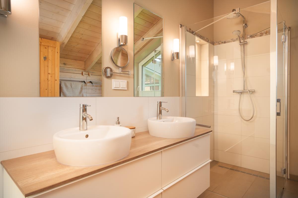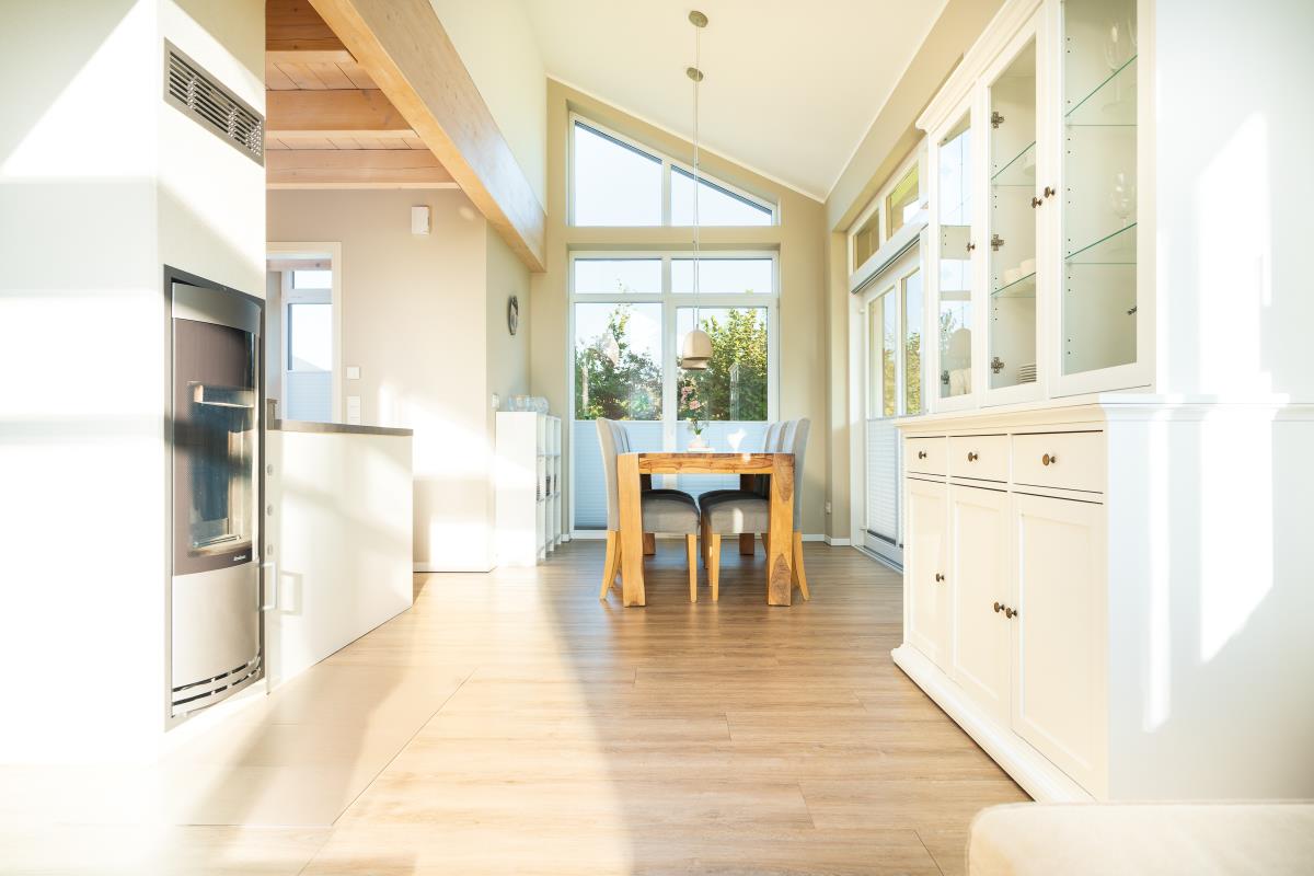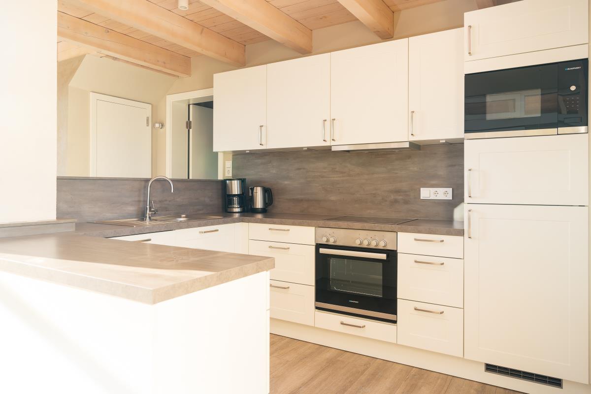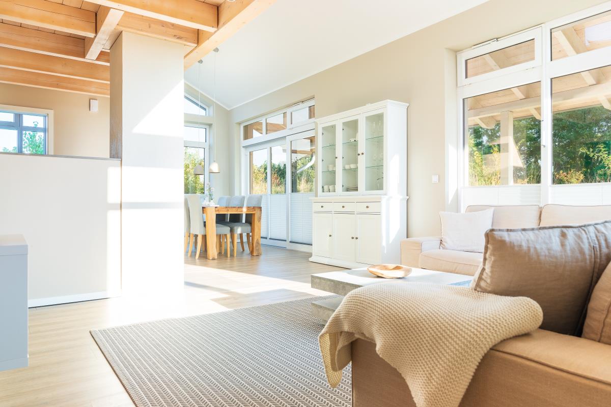 Haus Buche bietet Platz für 6-8 Personen, ist ideal für größere Familien, Familien mit Großeltern, oder zwei kleine Familien und Freunde. Offen gestalteter Wohnraum mit Ofen und bodentiefen Fenstern, drei Schlafzimmern mit Boxspringbetten, einer offenen Galerie mit Sofa, das zu einem Bett 140×90 umfunktioniert werden kann, ein großes Badezimmer mit Sauna und ein Gästebad. Haus Buche ist sehr gut ausgestattet und bietet den Komfort für einen erholsamen Urlaub. Um das Haus herum ist eine gepflegte Grünfläche eingesäumt von Sträuchern. Eine große Sonnenterrasse mit Sitzgruppe und Strandkorb, und eine teilüberdachte Terrasse, bieten Möglichkeiten um es sich draußen schön zu machen, zum Sonnen, zum Grillen oder zum Toben. Parkplatz ist am Haus.