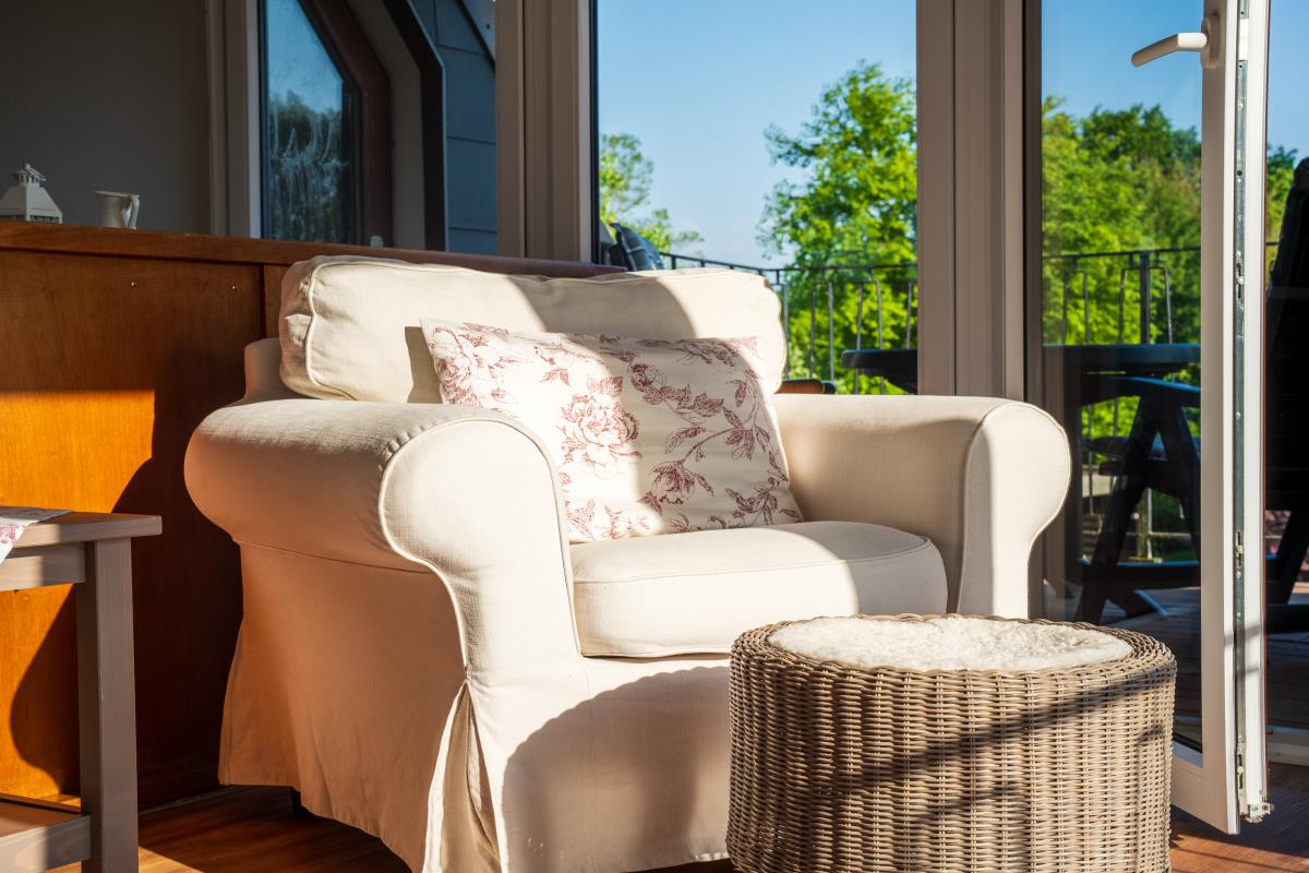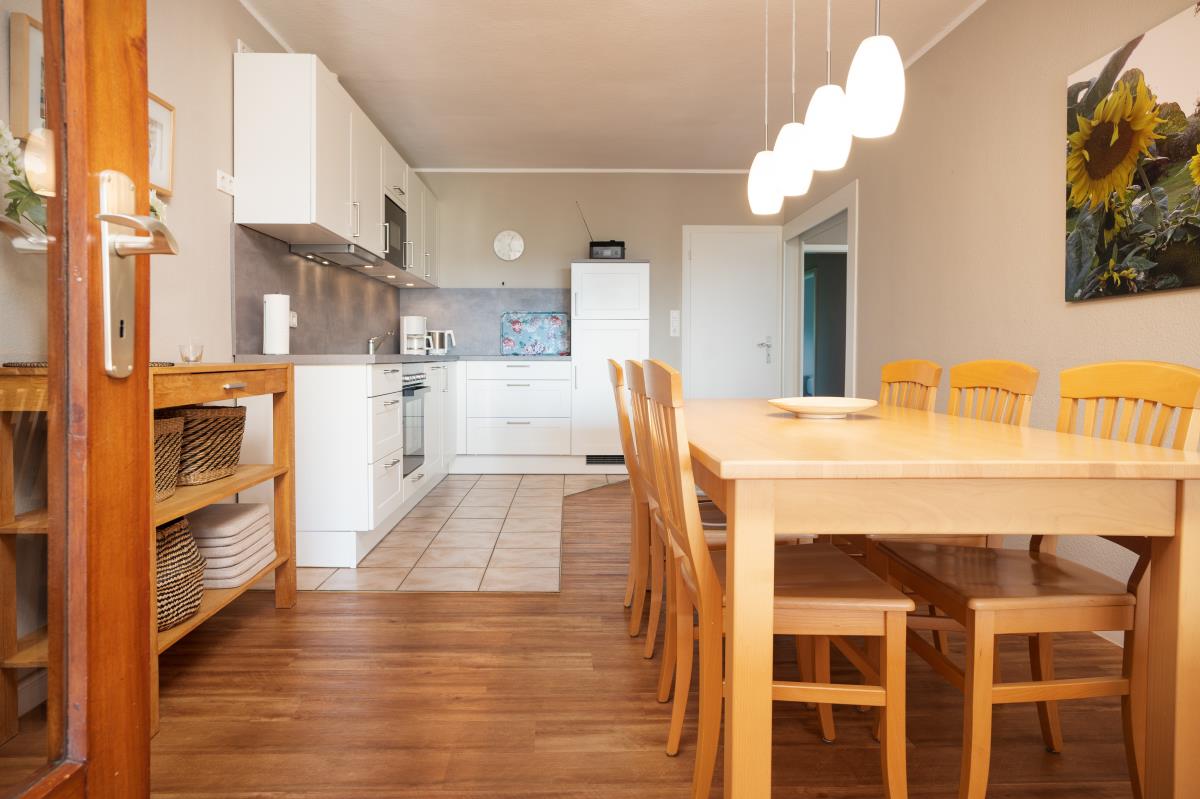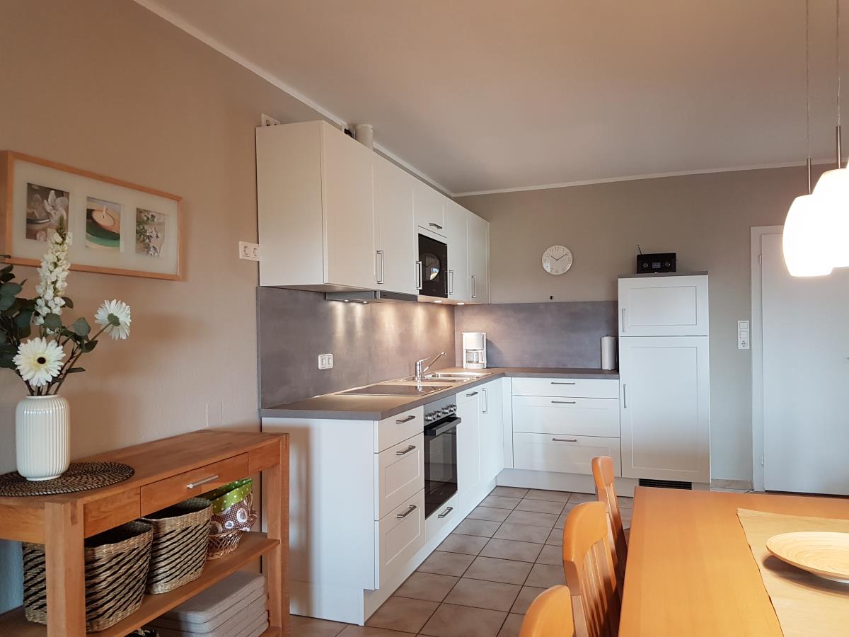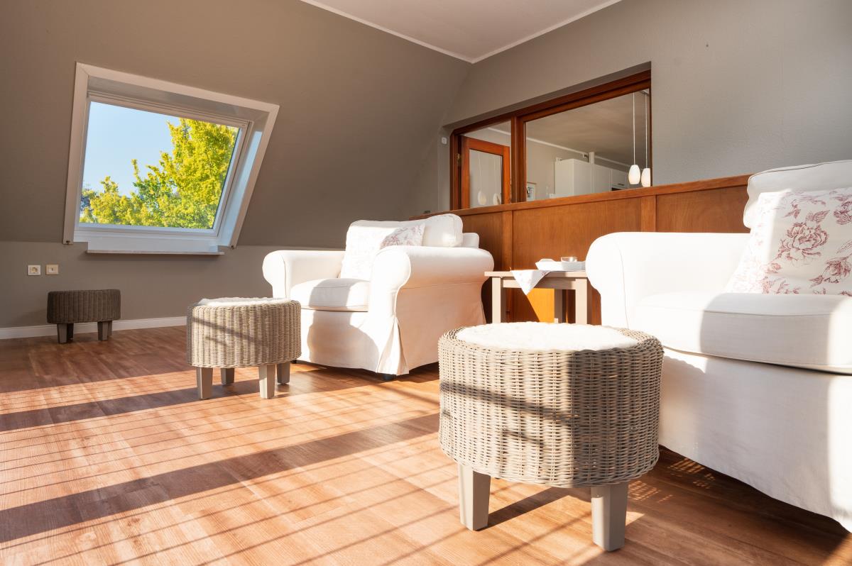 Wohnung Sonnenblume ist genau das Richtige für Platzbenötiger. Auf über 100qm befinden sich zwei große Schlafräume mit einmal einem Doppelbett mit extra hohen Matratzen, im anderen zwei Einzelbetten und auf Wunsch ein Zustellbett, eine Fernsehstube und eine große Sonnenstube mit Panoramablick, eine Küche mit Essplatz für 6 Personen und ein Badezimmer. Die Wohnung liegt auf der Südseite unseres Bauernhauses, so wie der Balkon. Auf dem überdachten und windgeschützen Balkon lässt es sich schon im Frühjahr und auch noch im Herbst gemütlich draußen sitzen. Das Highlight ist die Sonnenstube mit dem Panoramablick. Die Flügeltüren zur Westseite ausgerichtet lassen sich weit öffnen und man bekommt ein Drinn-Draußengefühl. Der einmalige Blick über die Felder ins Autal und weiter bis zur Ostsee mit wunderschönen Sonnenuntergängen ist oft Atemberaubend.